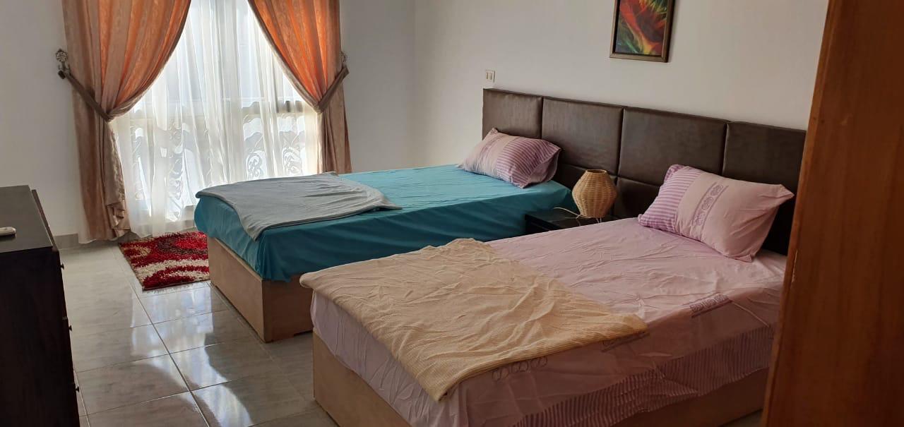 بالمرحلة التاسعة للإيجار مفروش شقة في الرحاب المساحة 131 متر2 بالطابق 0 قبلي تطل على شارع تشمل 3 نوم 2 حمام 2 بلكونة النموذج ( B ) تشطيب الشركة بسعر 35,000 جنيه