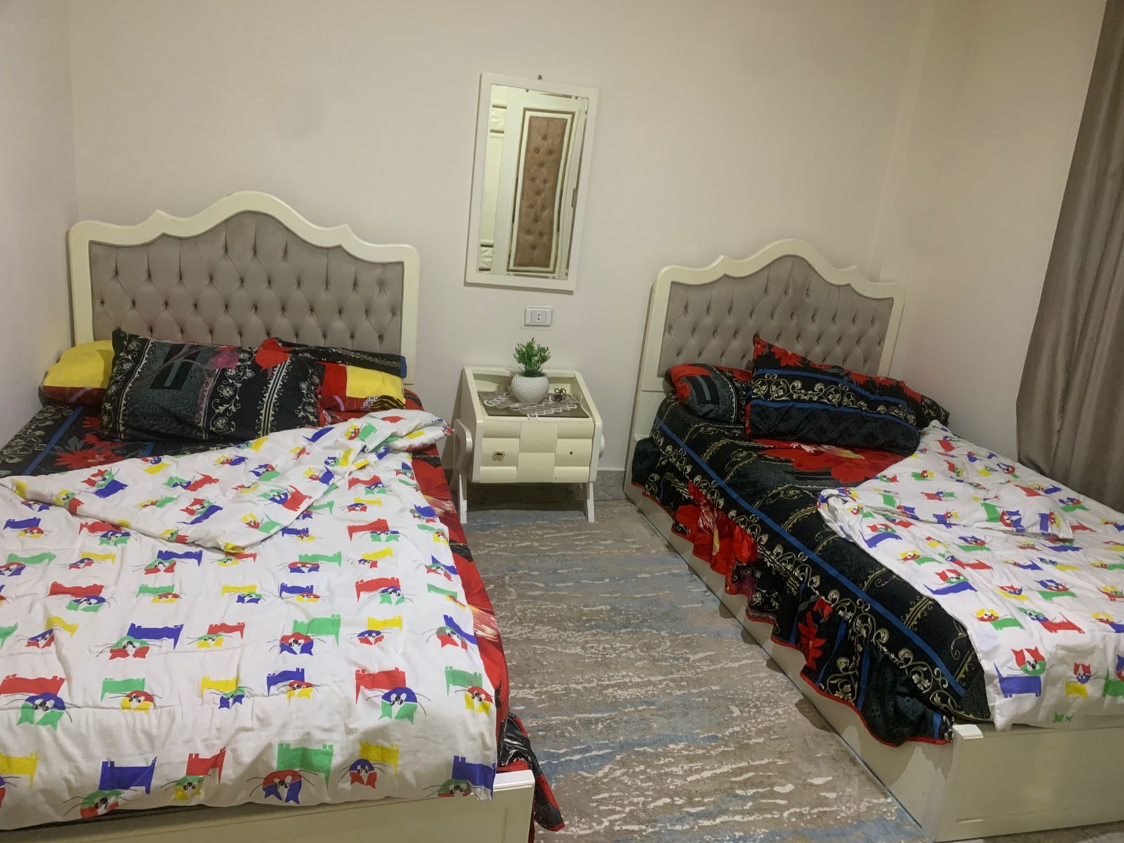 بالمرحلة السابعة للإيجار مفروش شقة في مدينتي المساحة 82 متر2 بالطابق 0 قبلي تطل على حديقة تشمل 2 نوم 1 حمام 2 بلكونة النموذج ( 60 ) تشطيب هاي لوكس بسعر 25,000 جنيه و فرش جديد أول سكن