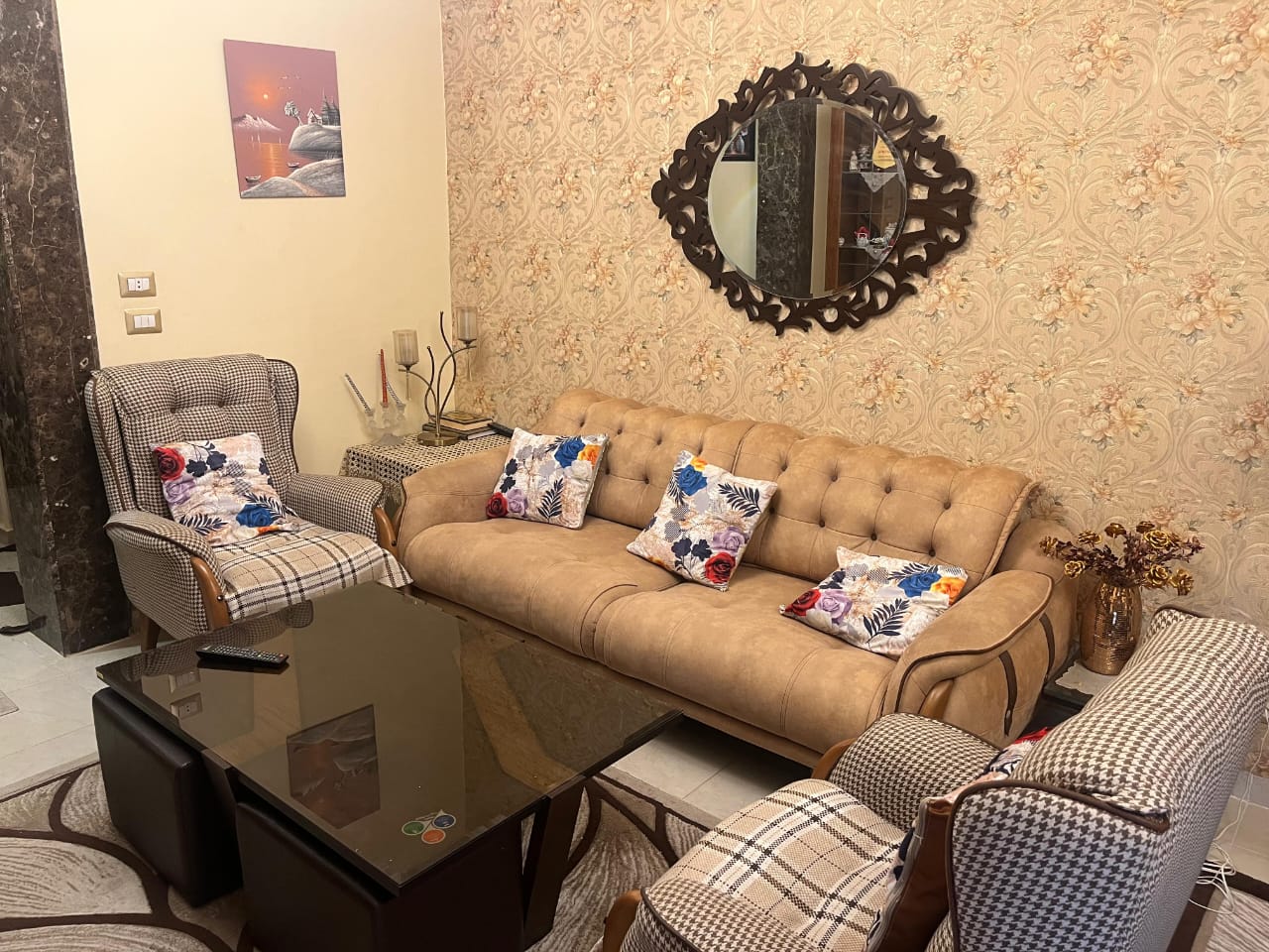 بالمرحلة الثالثة للإيجار مفروش شقة في مدينتي المساحة 105 متر2 بالطابق 0 بحري و غربي تطل على باركنج تشمل 2 نوم 1 حمام 2 بلكونة النموذج ( 100 ) تشطيب الشركة بسعر 25,000 جنيه