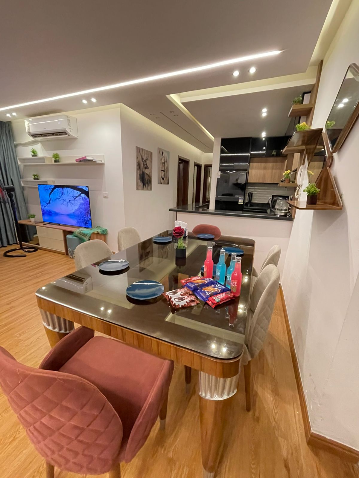 بالمرحلة الثانية عشر للإيجار مفروش شقة في مدينتي المساحة 117 متر2 بالطابق 0 بحري و غربي تطل على شارع و حديقة تشمل 3 نوم 2 حمام 2 بلكونة النموذج ( 04 ) تشطيب الشركة بسعر 63,000 جنيه